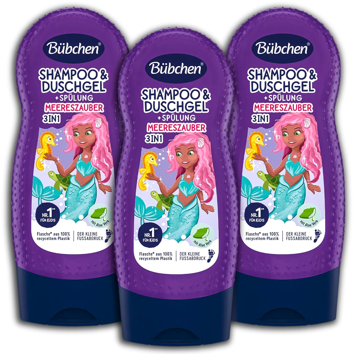 Bübchen Kinder Shampoo & Duschgel & Spülung 3in1 Meereszauber 3x 230 ml Ingredients: Aqua, Sodium Laureth Sulfate, Disodium Laureth Sulfosuccinate, Cocamidopropyl Betaine, Glycerin, Panthenol, Hydrolyzed Wheat Protein, Aloe Barbadensis Leaf Juice Powder, Lauryl Lactate, Sodium Chloride, Glycol Distearate, Laureth-4, Hydroxypropyl Guar Hydroxypropyltrimonium Chloride, Phenoxyethanol, Sodium Benzoate, Sodium Citrate, Citric Acid, Parfum Warnhinweise Kosmetik-Produkt nicht Trinken und nicht zum Verzehr geeignet