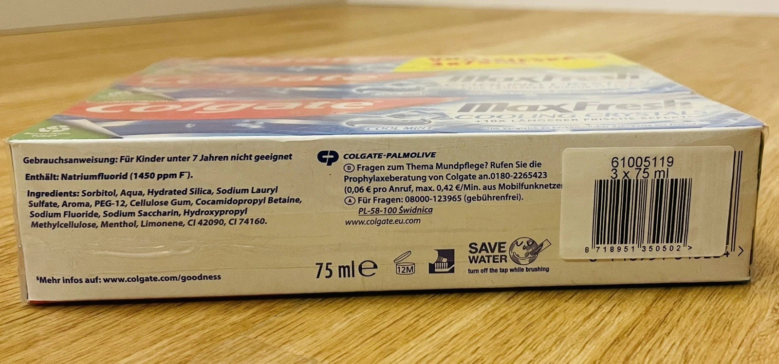 Colgate Max Fresh Cooling Crystals bietet intensive Frische mit innovativen Kühlkristallen für ein erfrischendes Putzerlebnis. Die Zahnpasta bekämpft effektiv Plaque und Zahnstein, während sie gleichzeitig den Atem langanhaltend erfrischt. Das 3er-Pack ermöglicht eine kontinuierliche Mundpflege über mehrere Wochen. Mit klinisch bewährter Formel schützt die Zahnpasta vor Karies und stärkt den Zahnschmelz. Ideal für alle, die maximale Frische und zuverlässigen Schutz in ihrer täglichen Zahnpflege-Routine suchen.