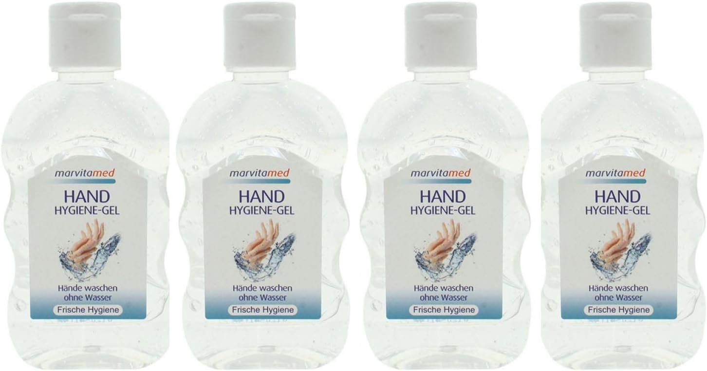 Marvita Hand Hygiene-Gel mit Aloe Vera 4x80ml Flasche ideal für unterwegs